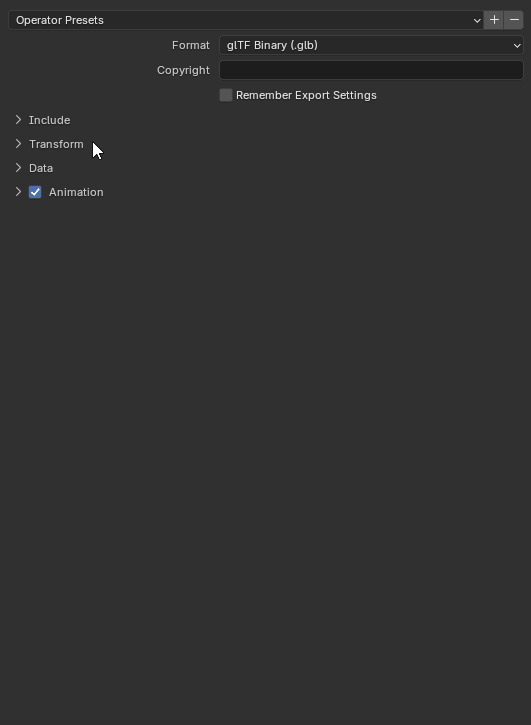 In order for all the animations to be exported, the clips should be added to the NLA Tracks. Make sure there’s only one animation clip for the avatar and another one for the prop, they must have the exact same number of frames.