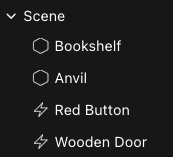 Some of the items in the catalog of the Scene Editor are Smart Items. Players can interact with these, they have configurable properties, and they can trigger actions on other smart items. For example: doors that can be opened and closed, platforms that move up and down, or buttons and levers that can activate other items.