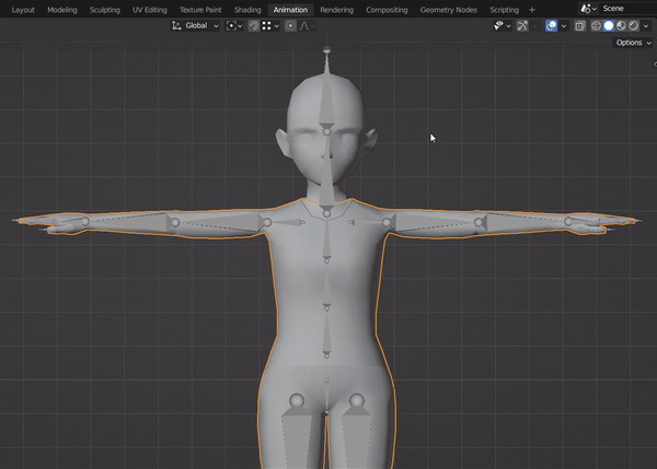 • Keep in mind to export the armature exactly as the one provided in the documentation. If it has any other bones like "_end_bones" or similar is not going to work on the client.